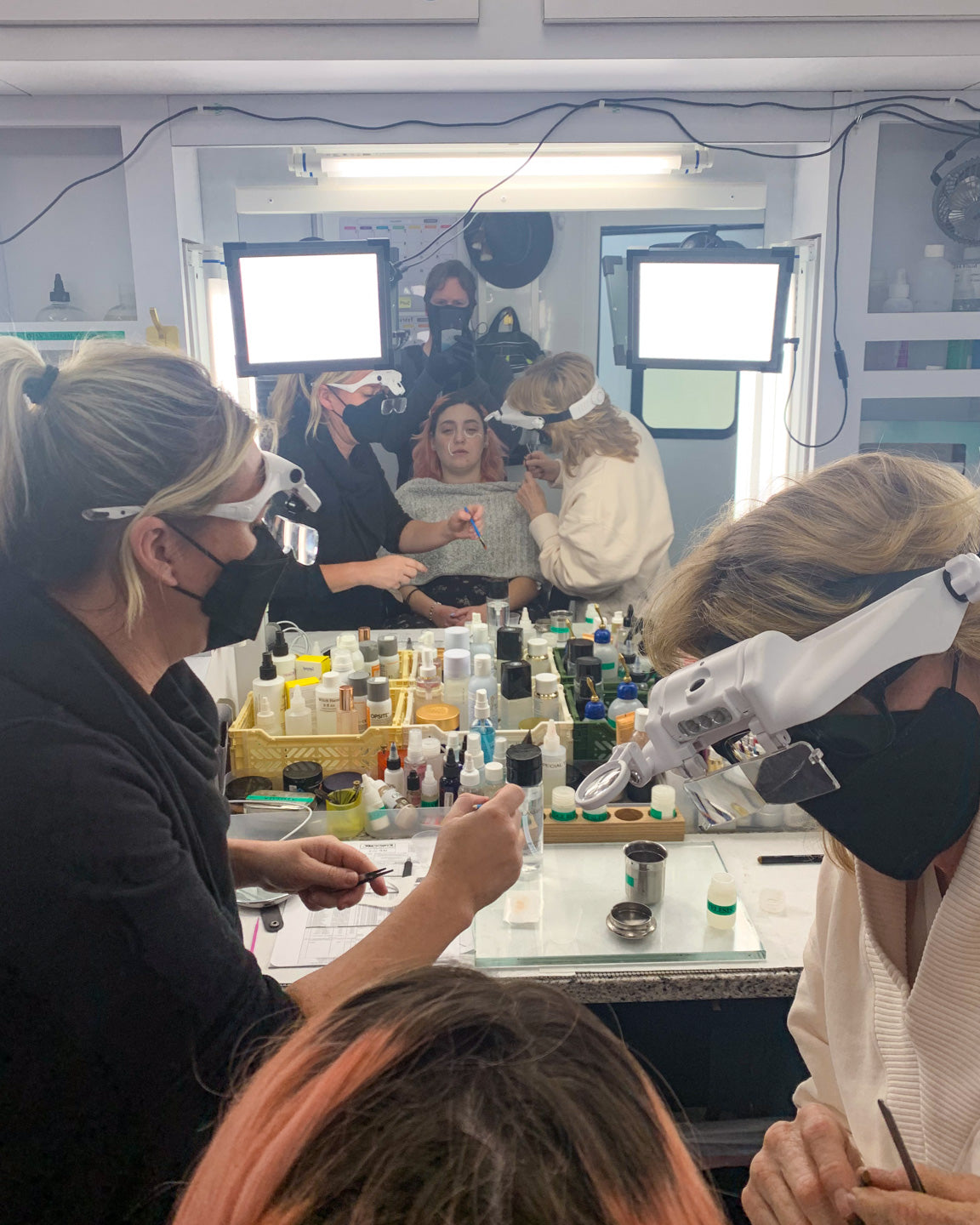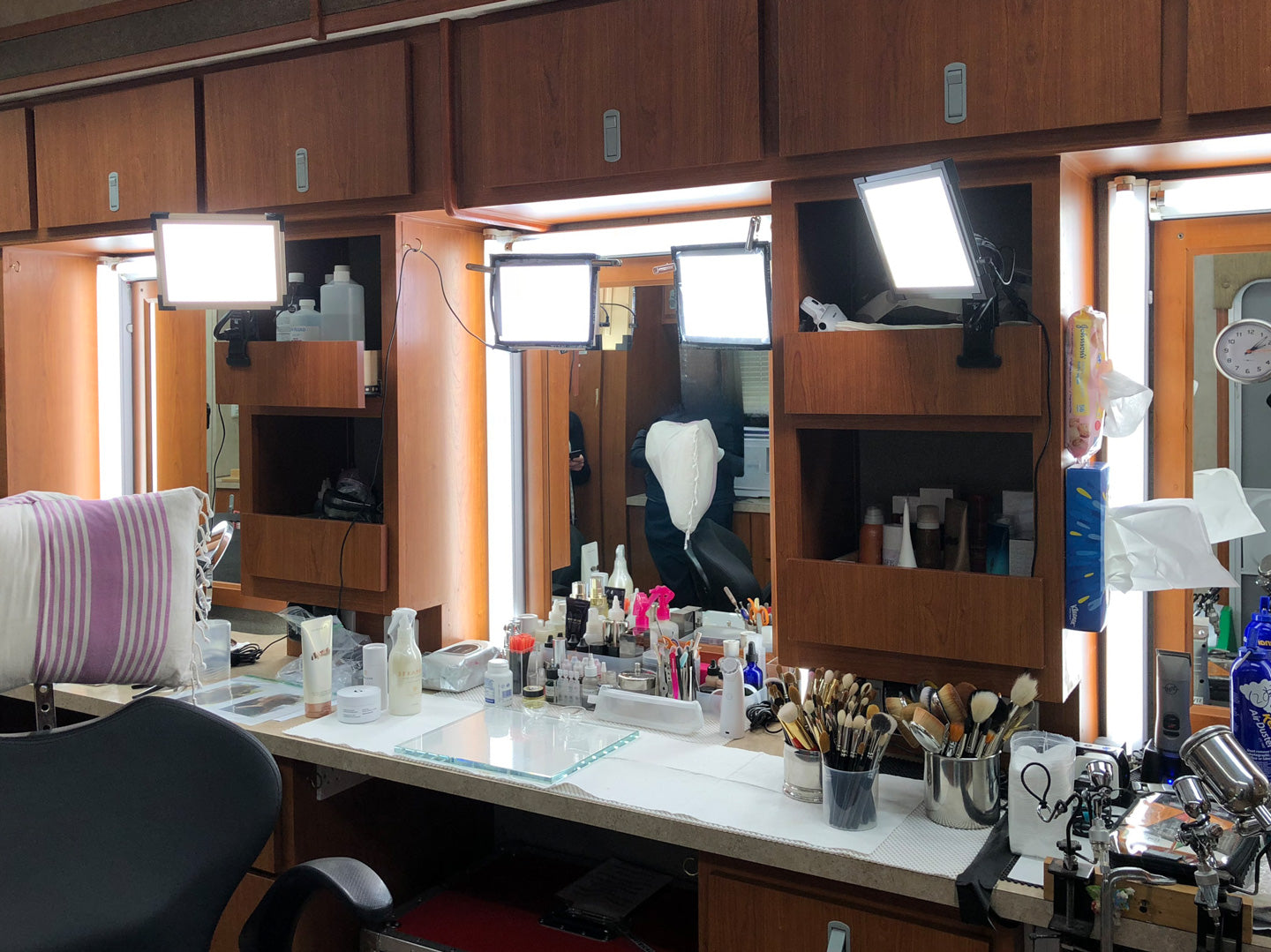 Even if your trailer is fully outfitted with TML lighting, there will be times when supplemental lighting is non-negotiable. Prosthetics? You need full 360-degree lighting. Painting prosthetic pieces, working with nails, lashes, or fine details? You need a well-lit counter.