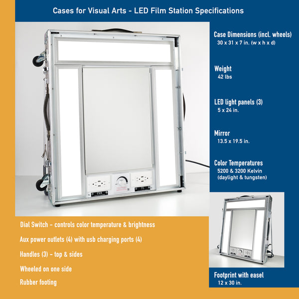 TML provides the lighting for its sister company, CVA (Cases for Visual Arts), which offers portable makeup stations designed specifically for the demands of set life. These stations come with: